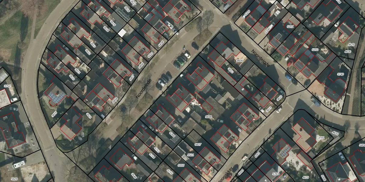 Noordeinde 16 is gelegen op kadastraal perceel RPN00F5838. Deze kadastrale aanduiding is uniek en wordt gebruikt door het Kadaster om eigendomsrechten en andere zakelijke rechten vast te leggen. Het perceel maakt onderdeel uit van de kadastrale gemeente Rucphen.