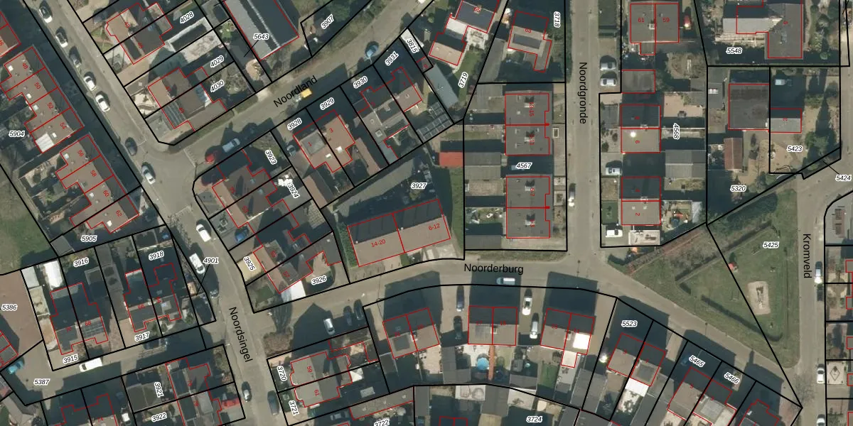Het perceel waarop Noorderburg 8 staat heeft een oppervlakte van 785 m². Dit is een groot perceel. De perceeloppervlakte wordt geregistreerd door het Kadaster. Gedetailleerde informatie over de maten van dit perceel kunt u vinden in het rapport Kadastrale kaart met maatvoering van Noorderburg 8.