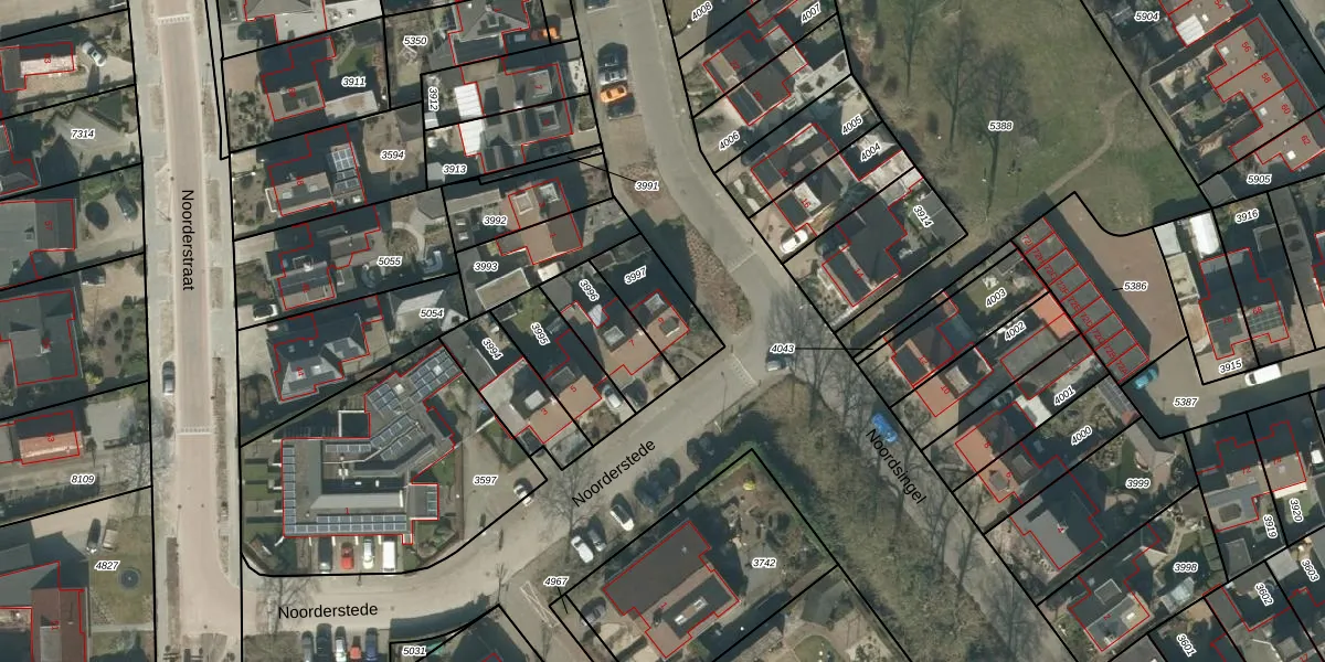 Het perceel waarop Noorderstede 9 staat heeft een oppervlakte van 184 m². Dit is een middelgroot perceel. De perceeloppervlakte wordt geregistreerd door het Kadaster. Gedetailleerde informatie over de maten van dit perceel kunt u vinden in het rapport Kadastrale kaart met maatvoering van Noorderstede 9.