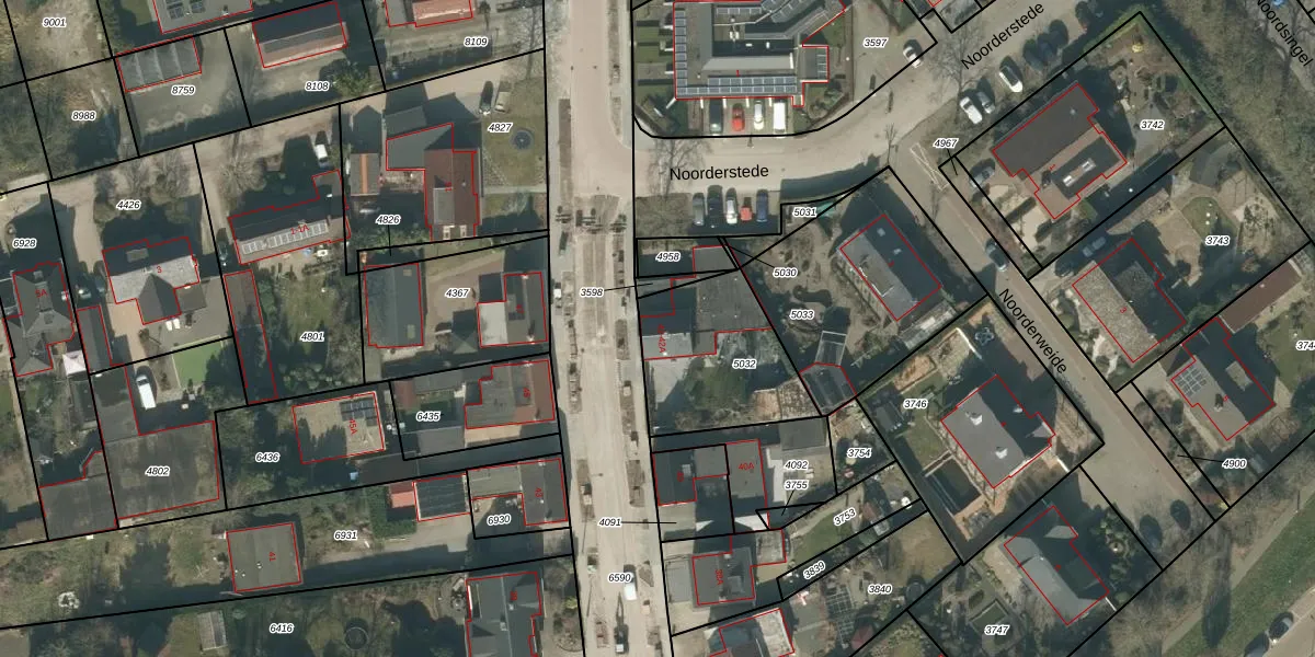 Het perceel waarop Noorderstraat 42 staat heeft een oppervlakte van 487 m². Dit is een groot perceel. De perceeloppervlakte wordt geregistreerd door het Kadaster. Gedetailleerde informatie over de maten van dit perceel kunt u vinden in het rapport Kadastrale kaart met maatvoering van Noorderstraat 42.