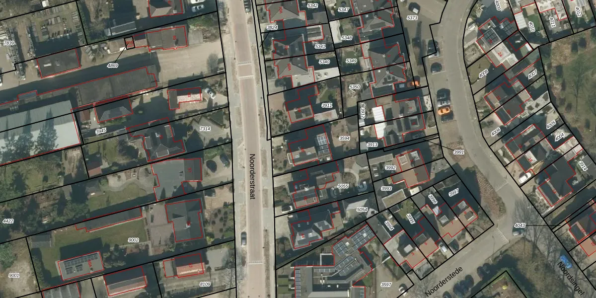 Het perceel waarop Noorderstraat 48 staat heeft een oppervlakte van 395 m². Dit is een groot perceel. De perceeloppervlakte wordt geregistreerd door het Kadaster. Gedetailleerde informatie over de maten van dit perceel kunt u vinden in het rapport Kadastrale kaart met maatvoering van Noorderstraat 48.