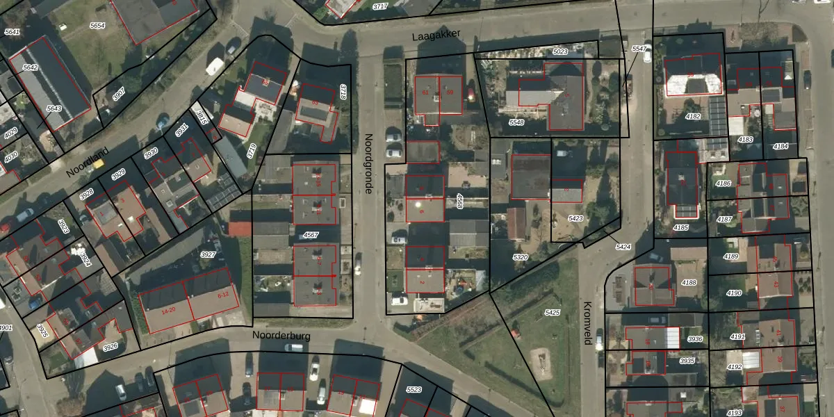 Het perceel waarop Noordgronde 6 staat heeft een oppervlakte van 1360 m². Dit is een zeer groot perceel. De perceeloppervlakte wordt geregistreerd door het Kadaster. Gedetailleerde informatie over de maten van dit perceel kunt u vinden in het rapport Kadastrale kaart met maatvoering van Noordgronde 6.