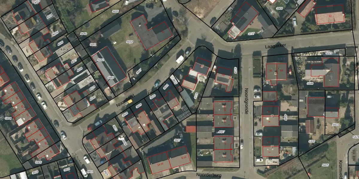 Het perceel waarop Noordland 9 staat heeft een oppervlakte van 32 m². Dit is een klein perceel. De perceeloppervlakte wordt geregistreerd door het Kadaster. Gedetailleerde informatie over de maten van dit perceel kunt u vinden in het rapport Kadastrale kaart met maatvoering van Noordland 9.