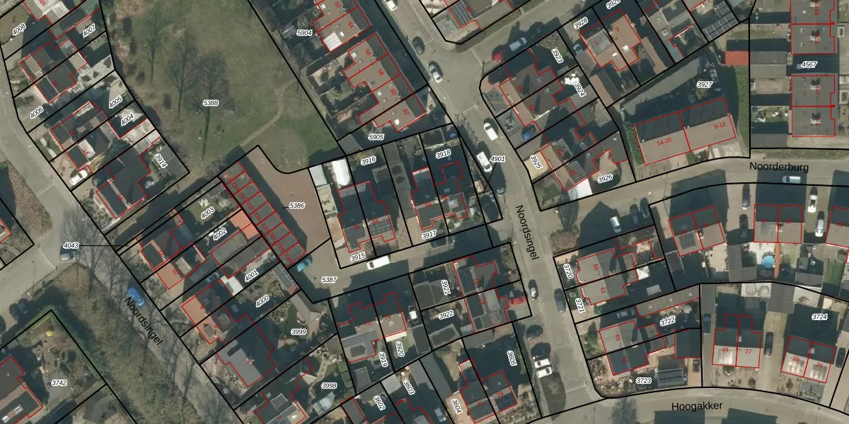 Gebruik de zoekbalk of klik op een perceel voor informatie over de adressen binnen dit perceel.