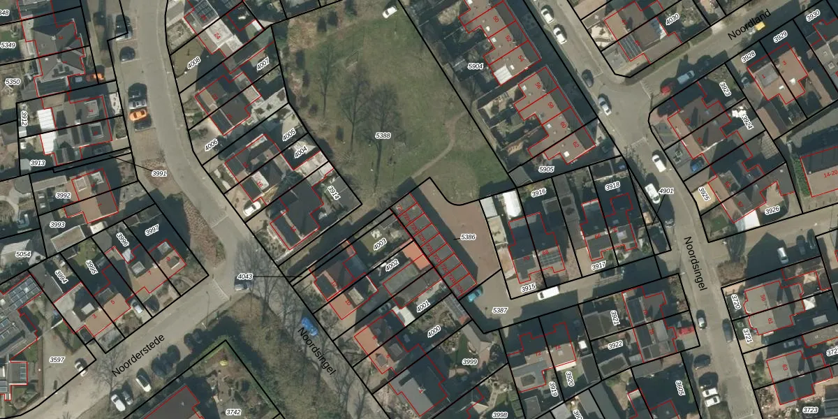 Het perceel waarop Noordsingel 72-H staat heeft een oppervlakte van 405 m². Dit is een groot perceel. De perceeloppervlakte wordt geregistreerd door het Kadaster. Gedetailleerde informatie over de maten van dit perceel kunt u vinden in het rapport Kadastrale kaart met maatvoering van Noordsingel 72-H.