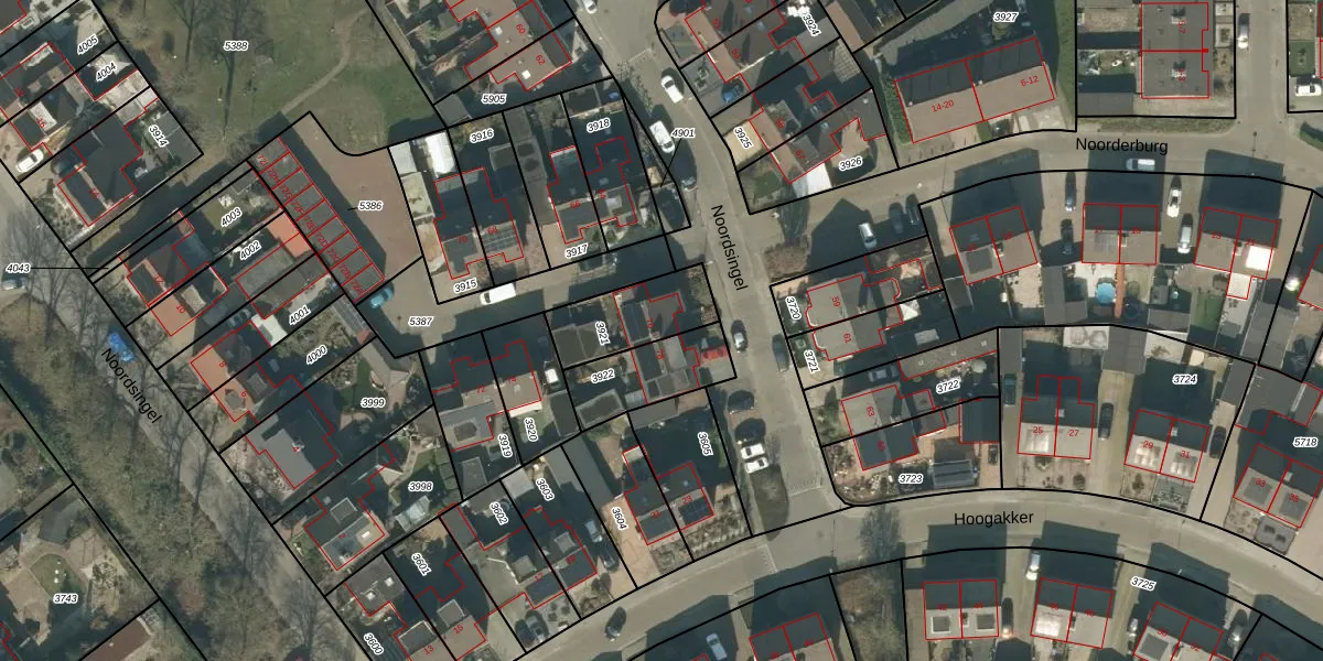 Gebruik de zoekbalk of klik op een perceel voor informatie over de adressen binnen dit perceel.