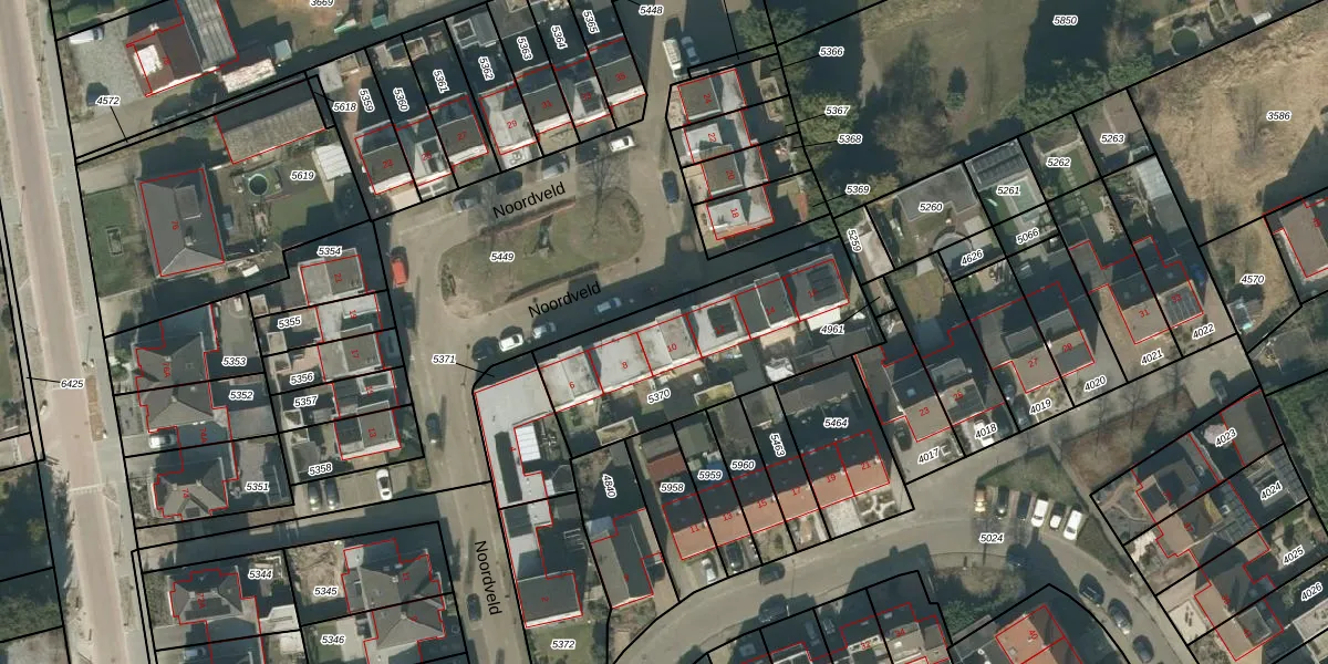 Noordveld 10 is gelegen op kadastraal perceel RPN00F5370. Deze kadastrale aanduiding is uniek en wordt gebruikt door het Kadaster om eigendomsrechten en andere zakelijke rechten vast te leggen. Het perceel maakt onderdeel uit van de kadastrale gemeente Rucphen.