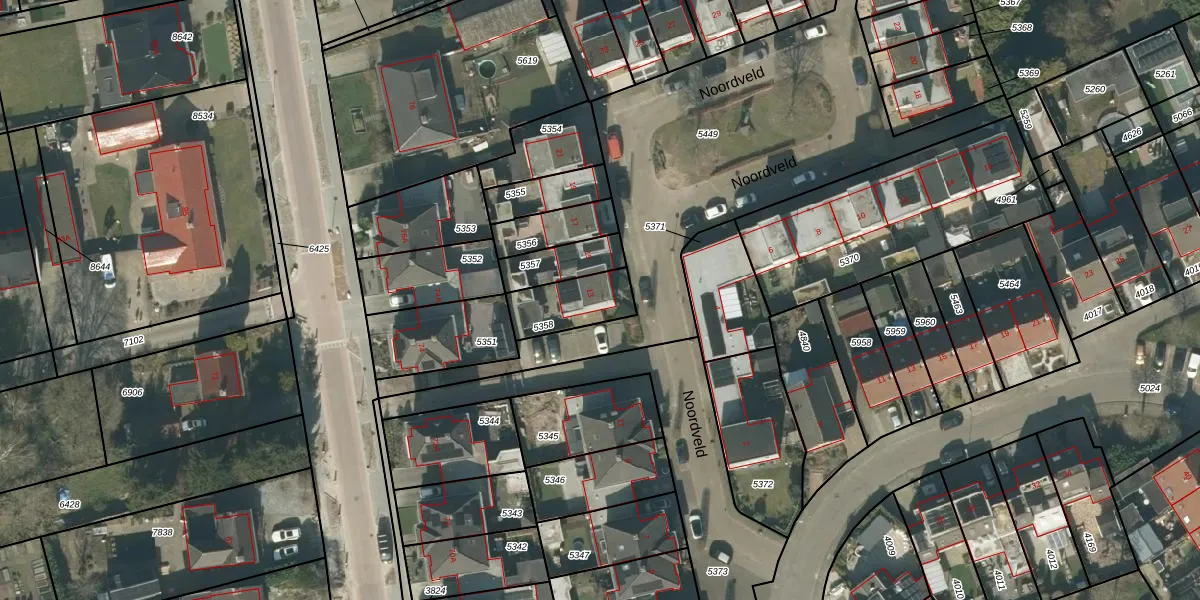 Het perceel waarop Noordveld 13 staat heeft een oppervlakte van 168 m². Dit is een middelgroot perceel. De perceeloppervlakte wordt geregistreerd door het Kadaster. Gedetailleerde informatie over de maten van dit perceel kunt u vinden in het rapport Kadastrale kaart met maatvoering van Noordveld 13.
