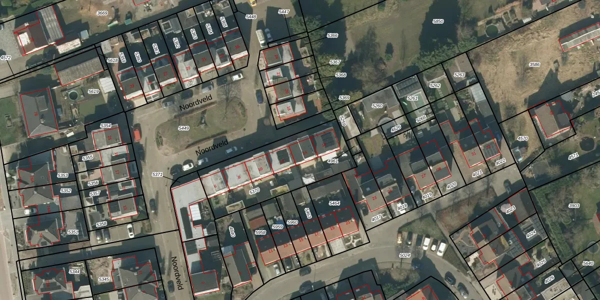 Het perceel waarop Noordveld 14 staat heeft een oppervlakte van 866 m². Dit is een groot perceel. De perceeloppervlakte wordt geregistreerd door het Kadaster. Gedetailleerde informatie over de maten van dit perceel kunt u vinden in het rapport Kadastrale kaart met maatvoering van Noordveld 14.