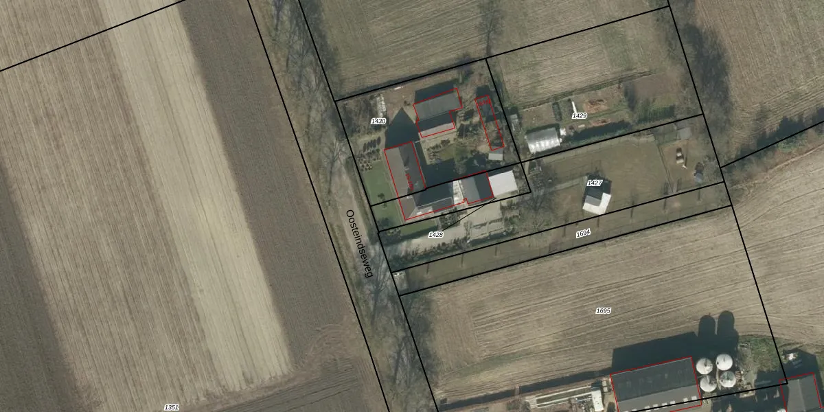 Oosteindseweg 15-A is gelegen op kadastraal perceel RPN00T1428. Deze kadastrale aanduiding is uniek en wordt gebruikt door het Kadaster om eigendomsrechten en andere zakelijke rechten vast te leggen. Het perceel maakt onderdeel uit van de kadastrale gemeente Rucphen.