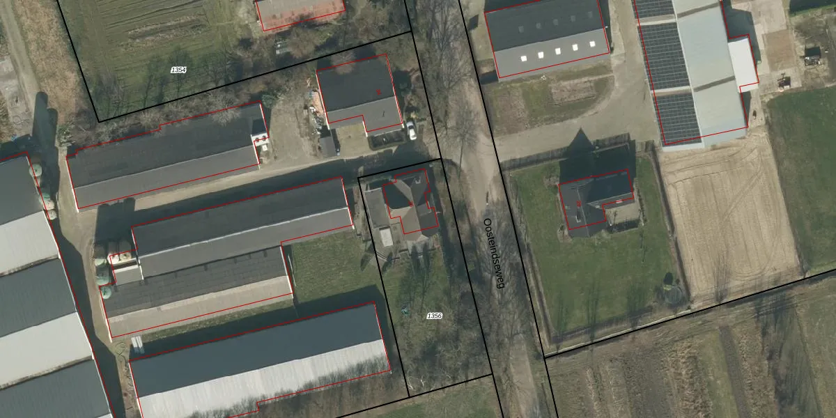 Oosteindseweg 36 is gelegen op kadastraal perceel RPN00T1356. Deze kadastrale aanduiding is uniek en wordt gebruikt door het Kadaster om eigendomsrechten en andere zakelijke rechten vast te leggen. Het perceel maakt onderdeel uit van de kadastrale gemeente Rucphen.