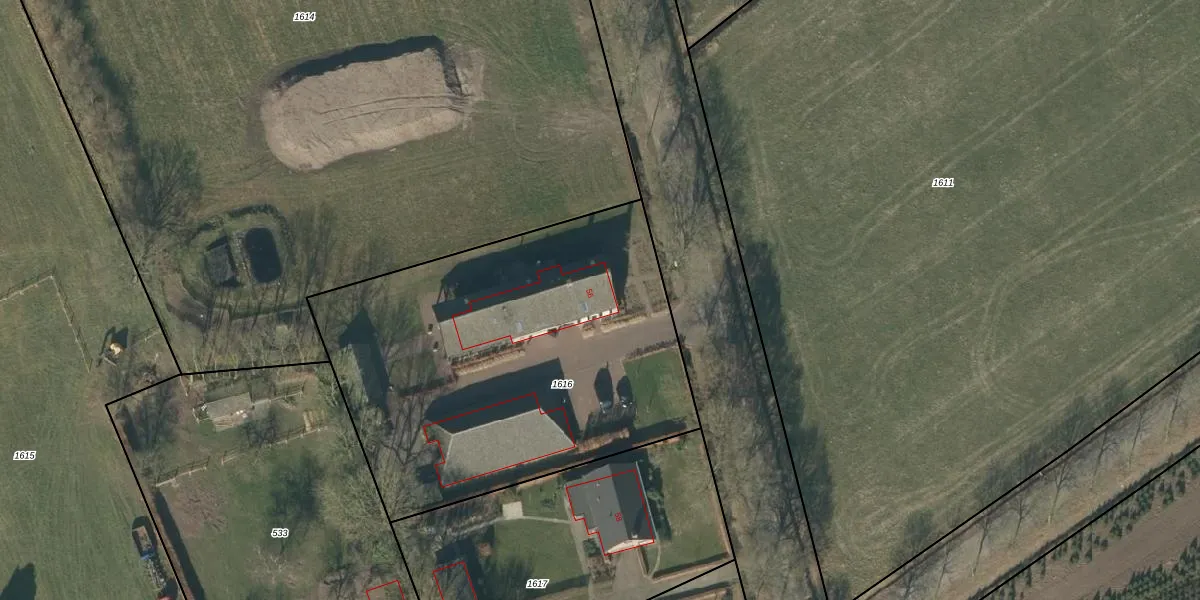 Het adres is gelegen op perceel 1616 in de sectie T en de kadastrale gemeente Rucphen. De kadastrale aanduiding is aldus RPN00-T-1616. De gemiddelde perceelgrootte in Rucphen is 4092,1 m². Dit perceel is kleiner: de perceeloppervlakte bedraagt 2230 m². De grootste perceeloppervlakte in de kadastrale gemeente is 43,3 ha. De kleinste oppervlakte bedraagt 0 m². Dit is het enige adres dat aanwezig is op het perceel. De huidige grenzen van het perceel zijn digitaal in de Basisregistratie Kadaster (BRK) geregistreerd op 11-09-2009.
