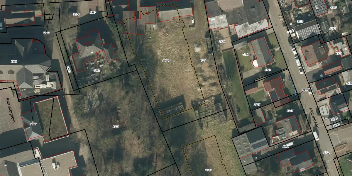 Het adres is gelegen op perceel 6039 in de sectie F en de kadastrale gemeente Rucphen. De kadastrale aanduiding is aldus RPN00-F-6039. Het perceel is kleiner dan gemiddeld in Rucphen. Het perceel is 1701 m² groot, terwijl het gemiddelde ligt op 4091,58 m². Het grootste perceel in de kadastrale gemeente is 43,3 ha. Het kleinste perceel heeft een oppervlakte van 0 m². Er zijn 22 adressen aanwezig op het perceel. In de Basisregistratie Kadaster (BRK) werden de grenzen van het perceel geregistreerd op 20-11-2025.