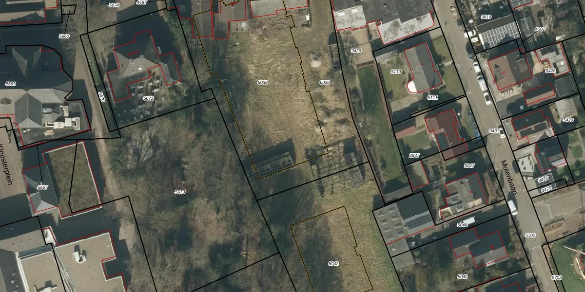 Het adres is gelegen op perceel 6039 in de sectie F en de kadastrale gemeente Rucphen. De kadastrale aanduiding is aldus RPN00-F-6039. Het perceel is kleiner dan gemiddeld in Rucphen. Het perceel is 1701 m² groot, terwijl het gemiddelde ligt op 4091,58 m². Het grootste perceel in de kadastrale gemeente is 43,3 ha. Het kleinste perceel heeft een oppervlakte van 0 m². Er zijn 22 adressen aanwezig op het perceel. De laatste wijziging in het de Basisregistratie Kadaster (BRK) was op 20-11-2025.