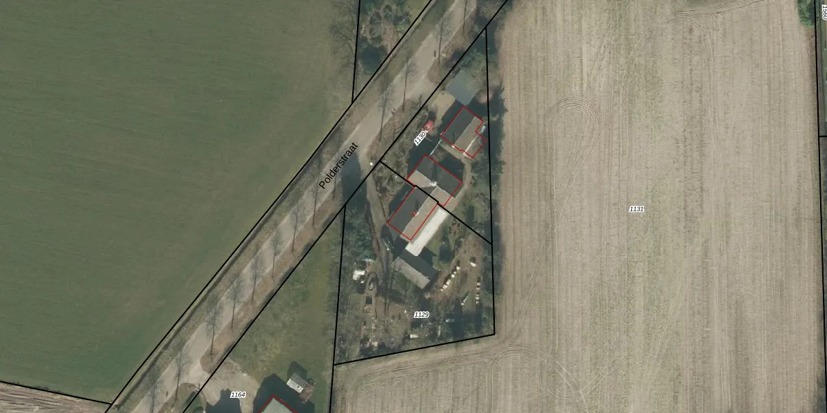 Het perceel waarop Polderstraat 32 staat heeft een oppervlakte van 1360 m². Dit is een zeer groot perceel. De perceeloppervlakte wordt geregistreerd door het Kadaster. Gedetailleerde informatie over de maten van dit perceel kunt u vinden in het rapport Kadastrale kaart met maatvoering van Polderstraat 32.