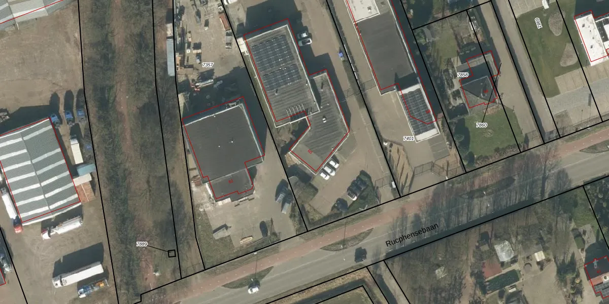 Rucphensebaan 60 is gelegen op kadastraal perceel RPN00D7254. Deze kadastrale aanduiding is uniek en wordt gebruikt door het Kadaster om eigendomsrechten en andere zakelijke rechten vast te leggen. Het perceel maakt onderdeel uit van de kadastrale gemeente Rucphen.