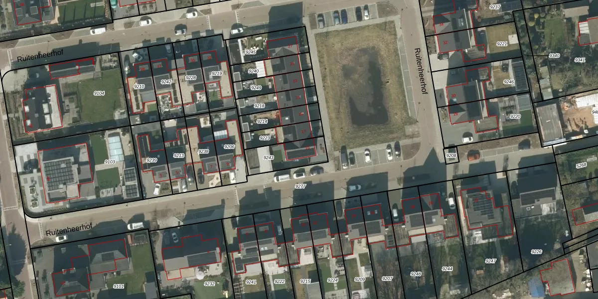 Het perceel waarop Ruitenheerhof 15 staat heeft een oppervlakte van 237 m². Dit is een middelgroot perceel. De perceeloppervlakte wordt geregistreerd door het Kadaster. Gedetailleerde informatie over de maten van dit perceel kunt u vinden in het rapport Kadastrale kaart met maatvoering van Ruitenheerhof 15.