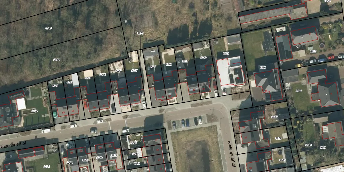 Ruitenheerhof 44 is gelegen op kadastraal perceel RPN00D9216. Deze kadastrale aanduiding is uniek en wordt gebruikt door het Kadaster om eigendomsrechten en andere zakelijke rechten vast te leggen. Het perceel maakt onderdeel uit van de kadastrale gemeente Rucphen.