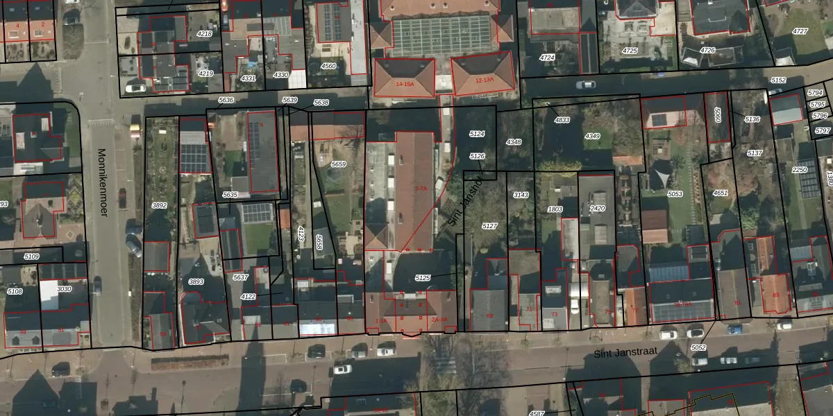 Het perceel waarop Sint Janshof 5-A staat heeft een oppervlakte van 1378 m². Dit is een zeer groot perceel. De perceeloppervlakte wordt geregistreerd door het Kadaster. Gedetailleerde informatie over de maten van dit perceel kunt u vinden in het rapport Kadastrale kaart met maatvoering van Sint Janshof 5-A.