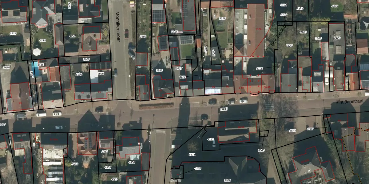 Het perceel waarop Sint Janstraat 59 staat heeft een oppervlakte van 208 m². Dit is een middelgroot perceel. De perceeloppervlakte wordt geregistreerd door het Kadaster. Gedetailleerde informatie over de maten van dit perceel kunt u vinden in het rapport Kadastrale kaart met maatvoering van Sint Janstraat 59.