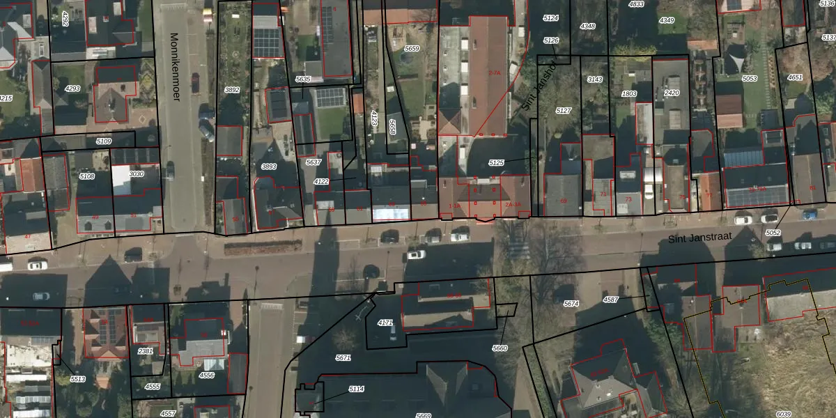 Het perceel waarop Sint Janstraat 65 staat heeft een oppervlakte van 490 m². Dit is een groot perceel. De perceeloppervlakte wordt geregistreerd door het Kadaster. Gedetailleerde informatie over de maten van dit perceel kunt u vinden in het rapport Kadastrale kaart met maatvoering van Sint Janstraat 65.