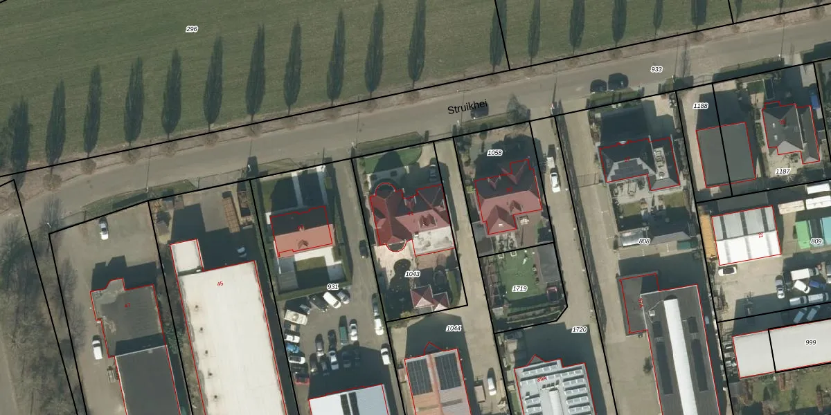 Het perceel waarop Struikhei 41 staat heeft een oppervlakte van 813 m². Dit is een groot perceel. De perceeloppervlakte wordt geregistreerd door het Kadaster. Gedetailleerde informatie over de maten van dit perceel kunt u vinden in het rapport Kadastrale kaart met maatvoering van Struikhei 41.