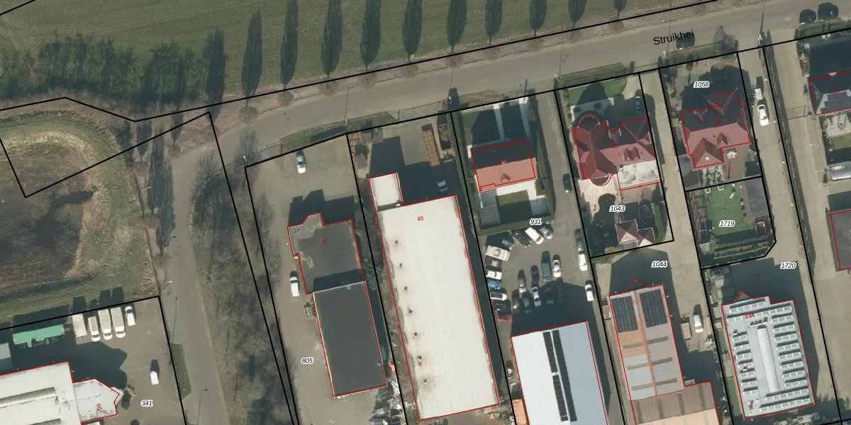 Struikhei 45 is gelegen op kadastraal perceel RPN00U930. Deze kadastrale aanduiding is uniek en wordt gebruikt door het Kadaster om eigendomsrechten en andere zakelijke rechten vast te leggen. Het perceel maakt onderdeel uit van de kadastrale gemeente Rucphen.