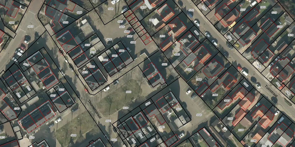 Het perceel waarop Thornerstraat 21 staat heeft een oppervlakte van 406 m². Dit is een groot perceel. De perceeloppervlakte wordt geregistreerd door het Kadaster. Gedetailleerde informatie over de maten van dit perceel kunt u vinden in het rapport Kadastrale kaart met maatvoering van Thornerstraat 21.