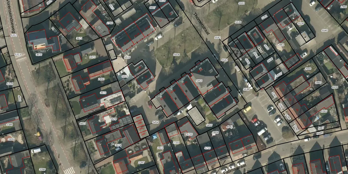 Het perceel waarop Thornerstraat 34 staat heeft een oppervlakte van 820 m². Dit is een groot perceel. De perceeloppervlakte wordt geregistreerd door het Kadaster. Gedetailleerde informatie over de maten van dit perceel kunt u vinden in het rapport Kadastrale kaart met maatvoering van Thornerstraat 34.