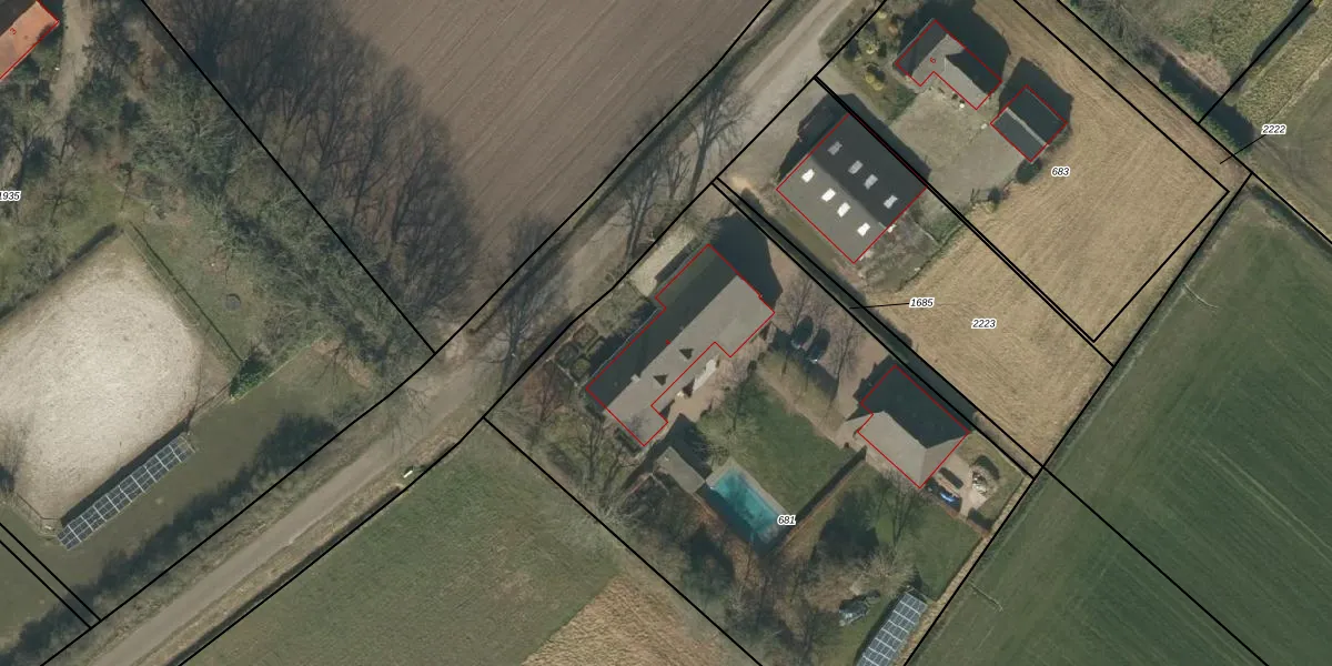 Het adres is gelegen op perceel 681 in de sectie T en de kadastrale gemeente Rucphen. De kadastrale aanduiding is aldus RPN00-T-681. Het perceel is 3380 m² groot. Dat is kleiner dan de gemiddelde perceeloppervlakte in Rucphen, dat op 4094,44 m² ligt. De grootste perceeloppervlakte in de kadastrale gemeente is 43,3 ha. De kleinste oppervlakte bedraagt 0 m². Op het perceel bevinden zich geen andere adressen. De huidige grenzen van het perceel zijn digitaal in de Basisregistratie Kadaster (BRK) geregistreerd op 11-09-2009.
