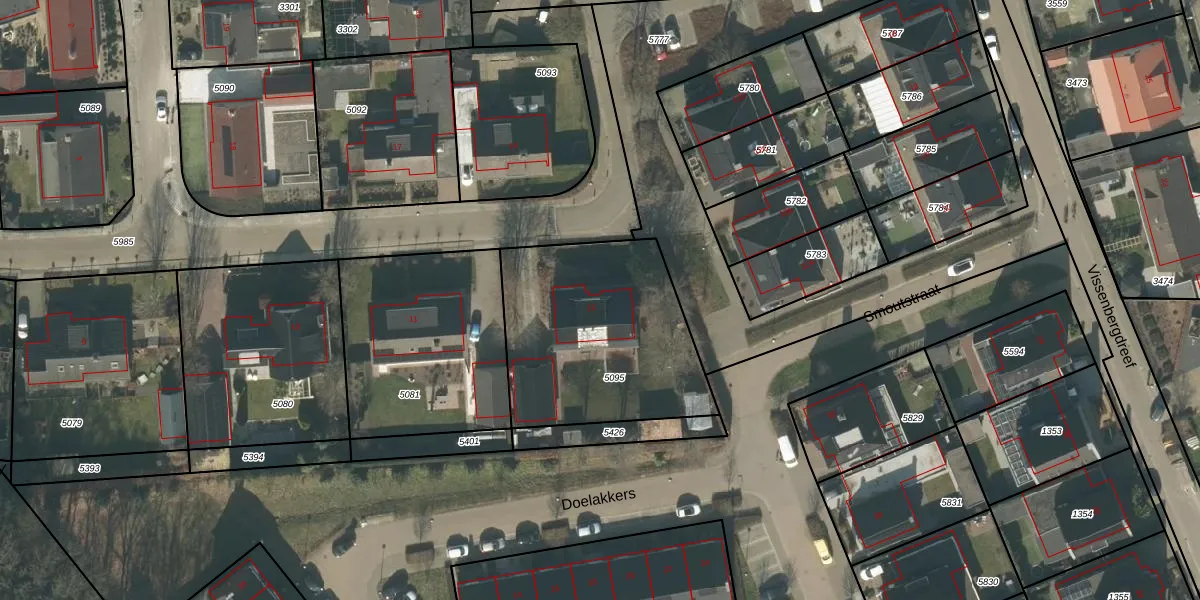 Het perceel waarop Vissenberg 12 staat heeft een oppervlakte van 875 m². Dit is een groot perceel. De perceeloppervlakte wordt geregistreerd door het Kadaster. Gedetailleerde informatie over de maten van dit perceel kunt u vinden in het rapport Kadastrale kaart met maatvoering van Vissenberg 12.