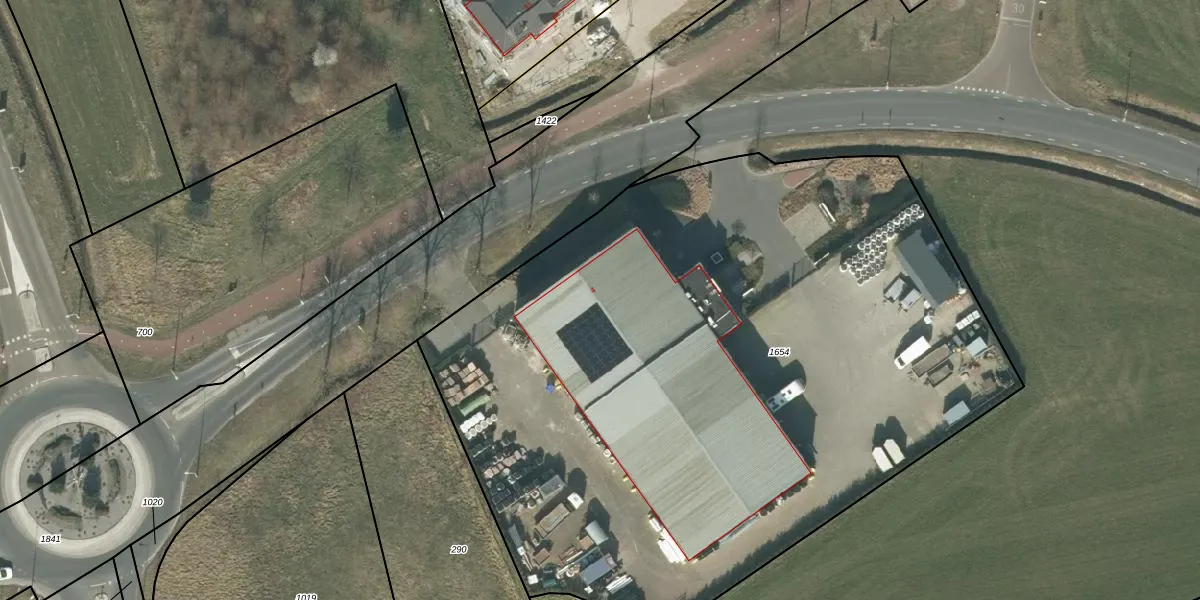 Het perceel waarop het adres ligt is RPN00-U-1654. De afkorting 'RPN00' staat voor kadastrale gemeente Rucphen. De gemiddelde perceeloppervlakte in de kadastrale gemeente Rucphen is 4091,58 m². Dit perceel is met zijn 5160 m² dus groter dan gemiddeld. Het grootste perceel in de kadastrale gemeente is 43,3 ha. Het kleinste perceel heeft een oppervlakte van 0 m². Dit is het enige adres dat aanwezig is op het perceel. In de Basisregistratie Kadaster (BRK) werden de grenzen van het perceel geregistreerd op 27-05-2020.