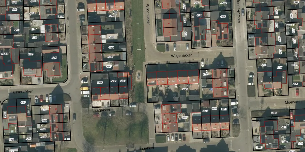 Het perceel waarop Wilgenakker 9 staat heeft een oppervlakte van 1184 m². Dit is een zeer groot perceel. De perceeloppervlakte wordt geregistreerd door het Kadaster. Gedetailleerde informatie over de maten van dit perceel kunt u vinden in het rapport Kadastrale kaart met maatvoering van Wilgenakker 9.