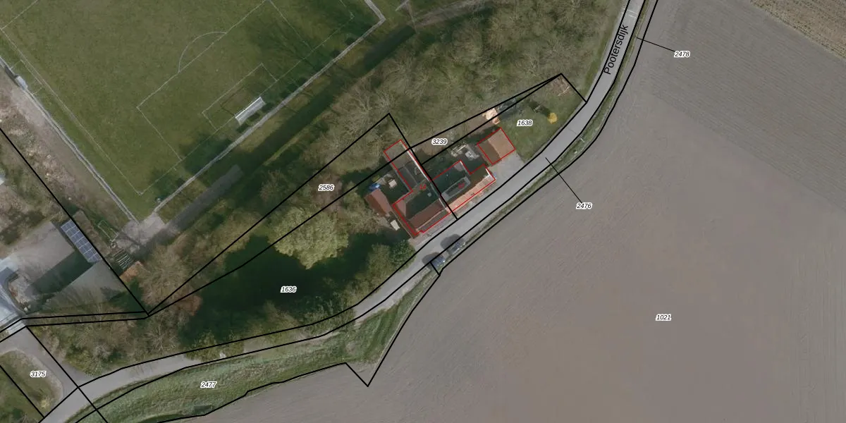 Het perceel waarop Pootersdijk 14 staat heeft een oppervlakte van 1740 m². Dit is een zeer groot perceel. De perceeloppervlakte wordt geregistreerd door het Kadaster. Gedetailleerde informatie over de maten van dit perceel kunt u vinden in het rapport Kadastrale kaart met maatvoering van Pootersdijk 14.