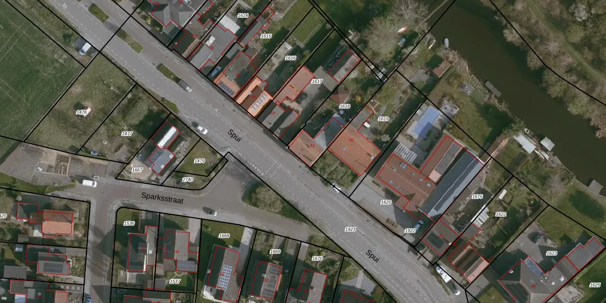 Spui 52 is gelegen op kadastraal perceel TNZ00P1618. Deze kadastrale aanduiding is uniek en wordt gebruikt door het Kadaster om eigendomsrechten en andere zakelijke rechten vast te leggen. Het perceel maakt onderdeel uit van de kadastrale gemeente Terneuzen.