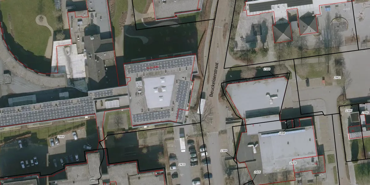 Het perceel waarop Beuckelaerstraat 25-007 staat heeft een oppervlakte van 1,1 ha. Dit is een zeer groot perceel. De perceeloppervlakte wordt geregistreerd door het Kadaster. Gedetailleerde informatie over de maten van dit perceel kunt u vinden in het rapport Kadastrale kaart met maatvoering van Beuckelaerstraat 25-007.