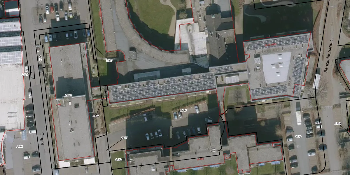 Het perceel waarop Beuckelaerstraat 25-0040 staat heeft een oppervlakte van 1,1 ha. Dit is een zeer groot perceel. De perceeloppervlakte wordt geregistreerd door het Kadaster. Gedetailleerde informatie over de maten van dit perceel kunt u vinden in het rapport Kadastrale kaart met maatvoering van Beuckelaerstraat 25-0040.