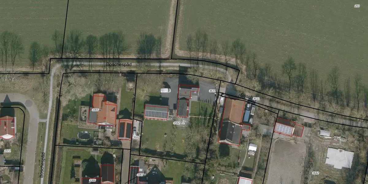 Bosch 9 is gelegen op kadastraal perceel ANA02A3592. Deze kadastrale aanduiding is uniek en wordt gebruikt door het Kadaster om eigendomsrechten en andere zakelijke rechten vast te leggen. Het perceel maakt onderdeel uit van de kadastrale gemeente Sint Anna Parochie.