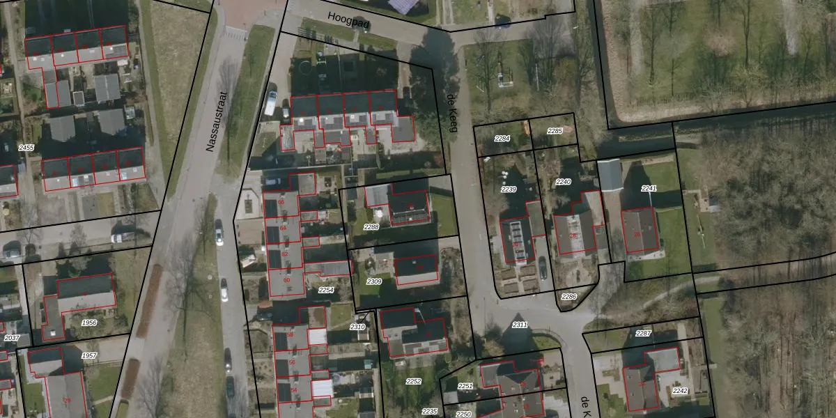 Het perceel waarop de Keeg 21 staat heeft een oppervlakte van 405 m². Dit is een groot perceel. De perceeloppervlakte wordt geregistreerd door het Kadaster. Gedetailleerde informatie over de maten van dit perceel kunt u vinden in het rapport Kadastrale kaart met maatvoering van de Keeg 21.