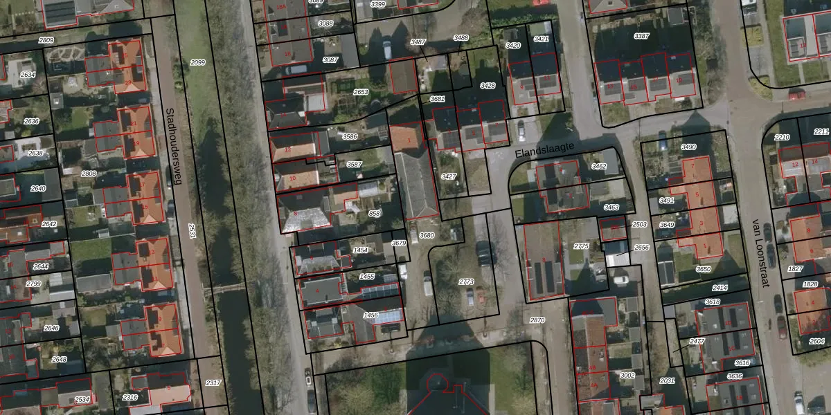 Elandslaagte 1 is gelegen op kadastraal perceel ANA02A3680. Deze kadastrale aanduiding is uniek en wordt gebruikt door het Kadaster om eigendomsrechten en andere zakelijke rechten vast te leggen. Het perceel maakt onderdeel uit van de kadastrale gemeente Sint Anna Parochie.