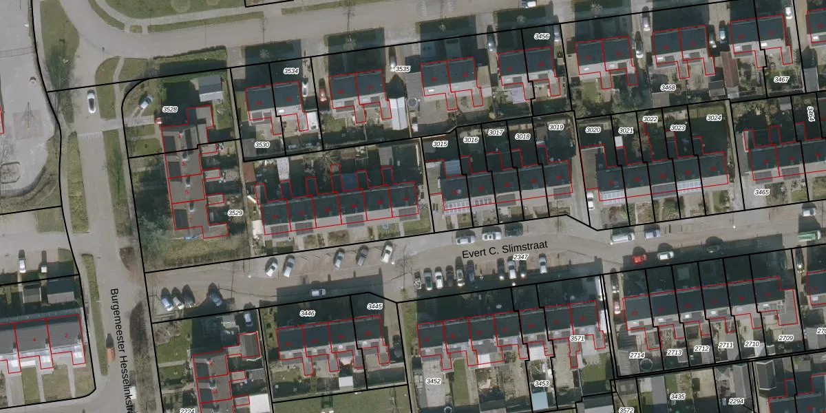 Evert C. Slimstraat 44 is gelegen op kadastraal perceel ANA02A3529. Deze kadastrale aanduiding is uniek en wordt gebruikt door het Kadaster om eigendomsrechten en andere zakelijke rechten vast te leggen. Het perceel maakt onderdeel uit van de kadastrale gemeente Sint Anna Parochie.