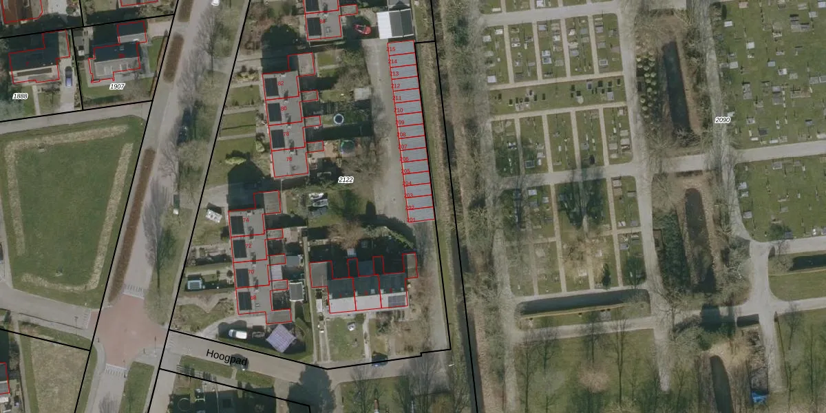Het perceel waarop Hoogpad 202 staat heeft een oppervlakte van 6686 m². Dit is een zeer groot perceel. De perceeloppervlakte wordt geregistreerd door het Kadaster. Gedetailleerde informatie over de maten van dit perceel kunt u vinden in het rapport Kadastrale kaart met maatvoering van Hoogpad 202.