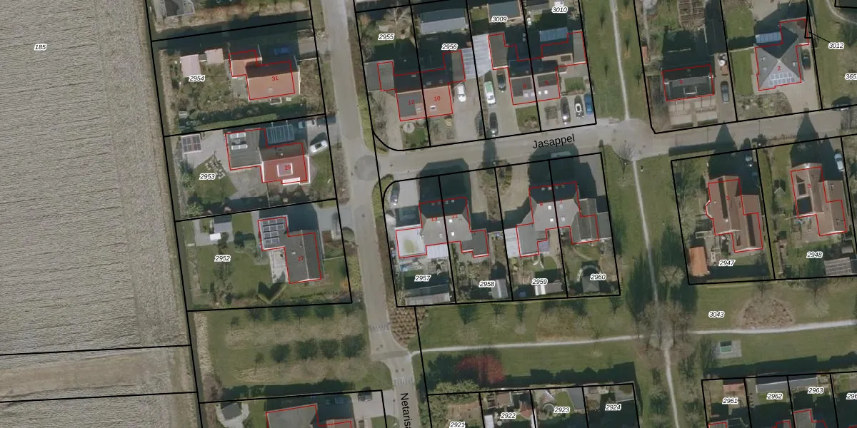 Jasappel 13 is gelegen op kadastraal perceel ANA02A2957. Deze kadastrale aanduiding is uniek en wordt gebruikt door het Kadaster om eigendomsrechten en andere zakelijke rechten vast te leggen. Het perceel maakt onderdeel uit van de kadastrale gemeente Sint Anna Parochie.