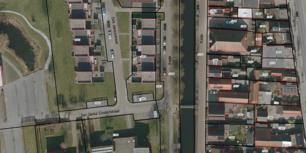 Het perceel waarop Kade 10 staat heeft een oppervlakte van 880 m². Dit is een groot perceel. De perceeloppervlakte wordt geregistreerd door het Kadaster. Gedetailleerde informatie over de maten van dit perceel kunt u vinden in het rapport Kadastrale kaart met maatvoering van Kade 10.