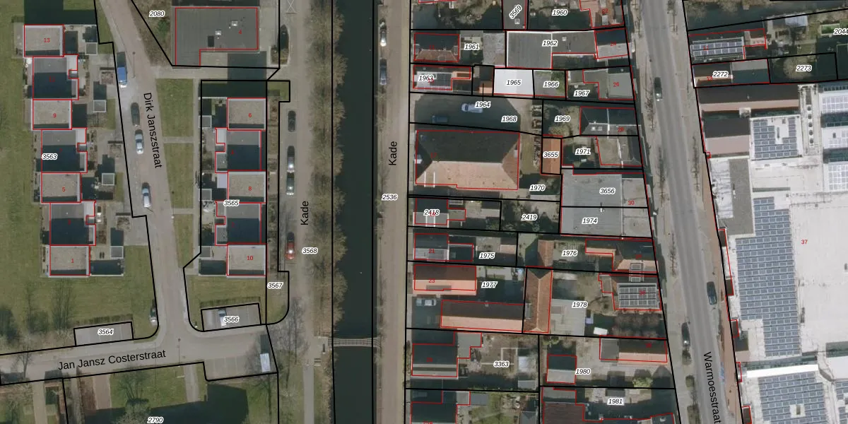 Gebruik de zoekbalk of klik op een perceel voor informatie over de adressen binnen dit perceel.