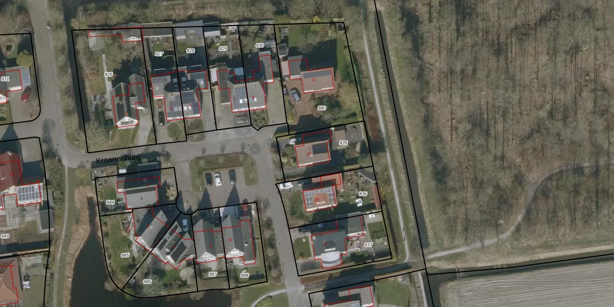 Het perceel waarop Kroanenburg 13 staat heeft een oppervlakte van 435 m². Dit is een groot perceel. De perceeloppervlakte wordt geregistreerd door het Kadaster. Gedetailleerde informatie over de maten van dit perceel kunt u vinden in het rapport Kadastrale kaart met maatvoering van Kroanenburg 13.