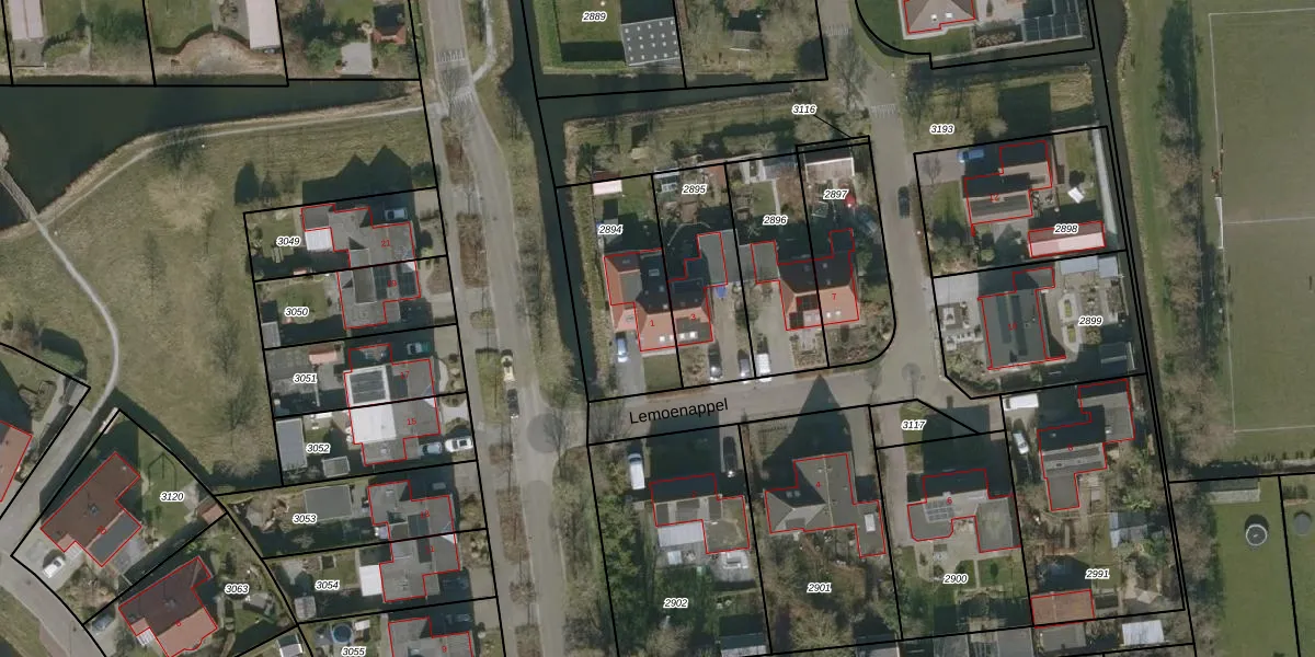 Het perceel waarop Lemoenappel 1 staat heeft een oppervlakte van 485 m². Dit is een groot perceel. De perceeloppervlakte wordt geregistreerd door het Kadaster. Gedetailleerde informatie over de maten van dit perceel kunt u vinden in het rapport Kadastrale kaart met maatvoering van Lemoenappel 1.