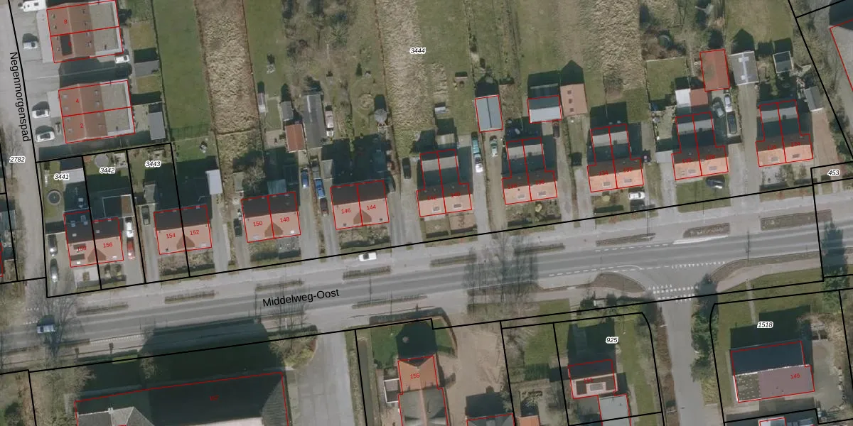 Middelweg-Oost 142 is gelegen op kadastraal perceel ANA02A3444. Deze kadastrale aanduiding is uniek en wordt gebruikt door het Kadaster om eigendomsrechten en andere zakelijke rechten vast te leggen. Het perceel maakt onderdeel uit van de kadastrale gemeente Sint Anna Parochie.