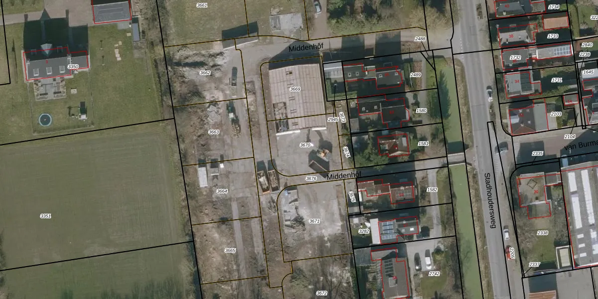 Het perceel waarop Middenhôf 3 staat heeft een oppervlakte van 438 m². Dit is een groot perceel. De perceeloppervlakte wordt geregistreerd door het Kadaster. Gedetailleerde informatie over de maten van dit perceel kunt u vinden in het rapport Kadastrale kaart met maatvoering van Middenhôf 3.