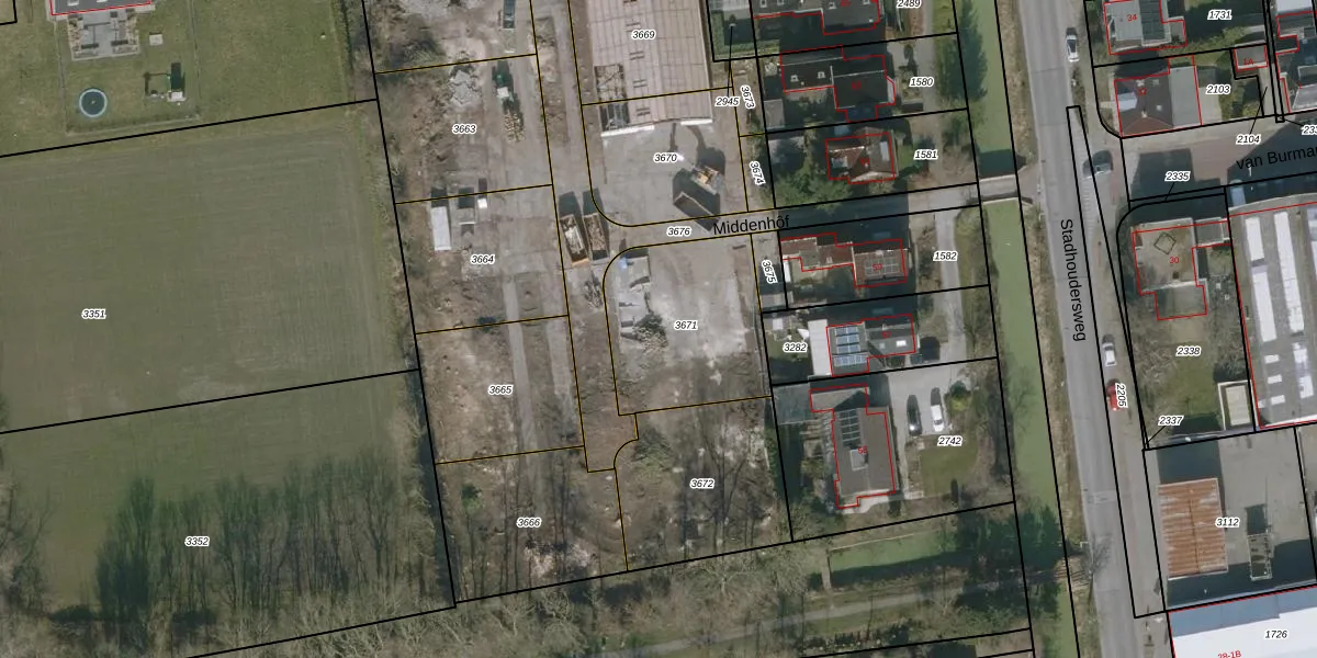 Het perceel waarop Middenhôf 5 staat heeft een oppervlakte van 575 m². Dit is een groot perceel. De perceeloppervlakte wordt geregistreerd door het Kadaster. Gedetailleerde informatie over de maten van dit perceel kunt u vinden in het rapport Kadastrale kaart met maatvoering van Middenhôf 5.